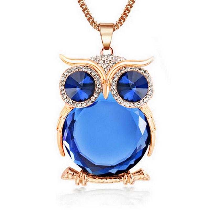 8 Цвета Модные Сова Ожерелье Rhinestone Способа Кристаллические Ювелирные Изделия Заявление Женщины Ожерелье Серебряная Цепочка Длинные Ожерелья и Кулоны