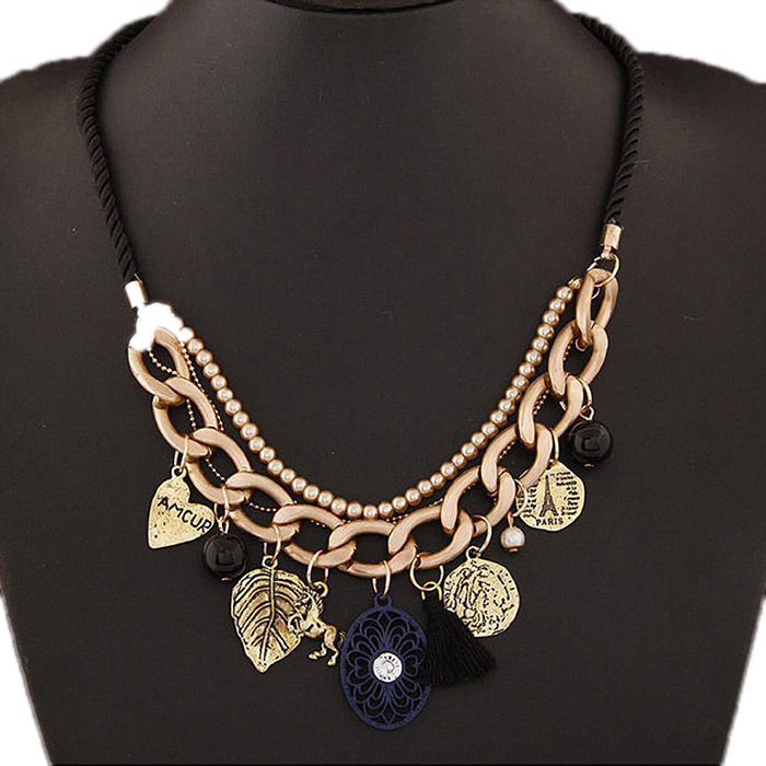2016 Женская Мода Чешские Многослойные Кисточкой Оставьте Любовь Париж Эйфелева Башня Монета Лошадь Подвески Ожерелья Ювелирных Изделий Для Подарка NL270