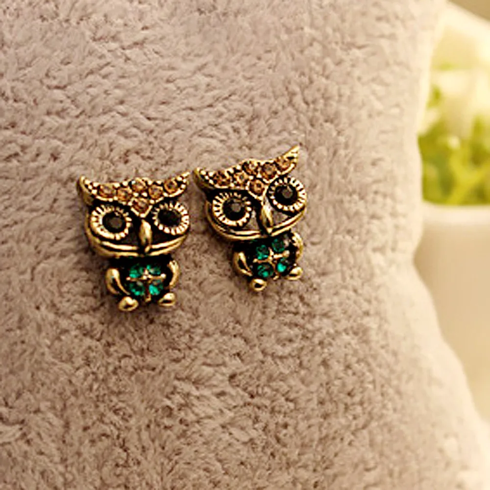 2016 Новых женщин Мода Уха Ювелирные Изделия Симпатичные Сова Стиль Зеленый Горный Хрусталь Старинные Стержень Уха Серьги Животных Заявление Серьги Brincos