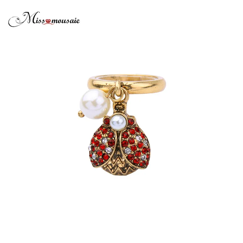 Горячие Продажи Кольца Для Женщин Мода Стиль Жемчуг Кристалл Насекомых Божья Коровка Кольцо Ювелирных Изделий Для Сладких Девочек Женщин Кольца Мисс Mousaie