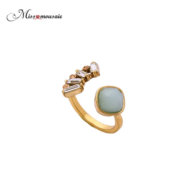 Корейский Старинные Ювелирные Изделия Геометрия Агат Кристалл Открыть Палец Кольцо Роскошный Золотой Аксессуар Одежды Клуб Партии Открытым Кольцо Мисс Mousaie