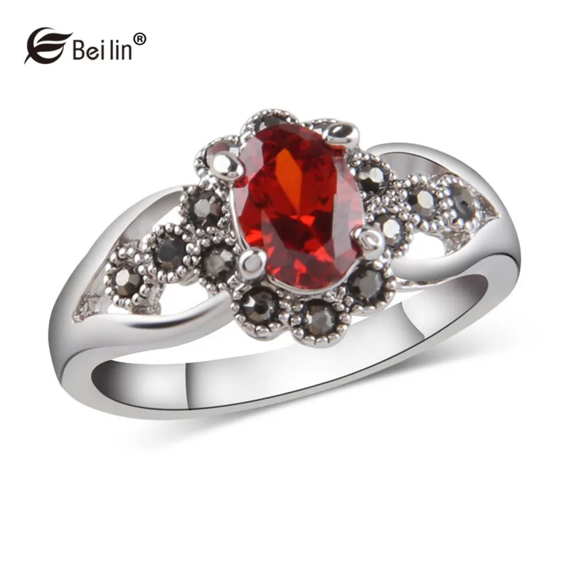 2016 Новый Старинные Ювелирные Изделия Красный Камень Кольца Античная Посеребренная Люкс CZ Кристалл Кольца Для Женщин Anillos (AL810030)