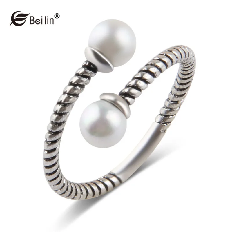 2016 Новый Анель женщина для Двойной Имитация Перл Vintage Кольца Ювелирные Изделия Античный Посеребренная Открытые Кольца Для Женщин (AL810033)