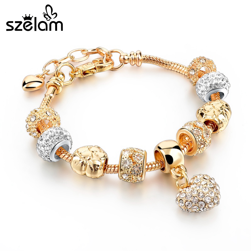 Szelam 2016 Ювелирные Изделия Хрустальные Бусины Сердца Золотой Браслет Европейский Шарм Diy Браслеты и Браслеты Pulseira Sbr160131