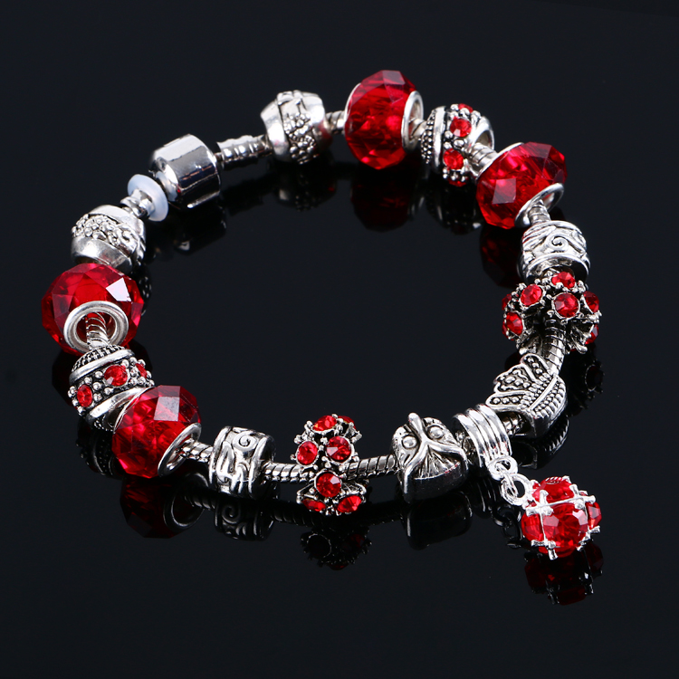 Продвижение Продажа Античная Серебро 925 Шарм Fit Браслет и Браслет с Любовью и Цветок Хрустальный Шар для Женщин Свадьба