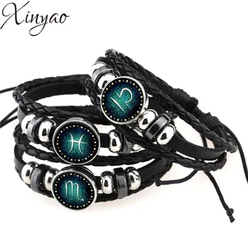 2016 Кожа Плетеный 12 Созвездие Браслет Мужчины Женщины Лев/Дева/Aagittarius/Водолей/Скорпион/Весы/козерог Браслет F6110