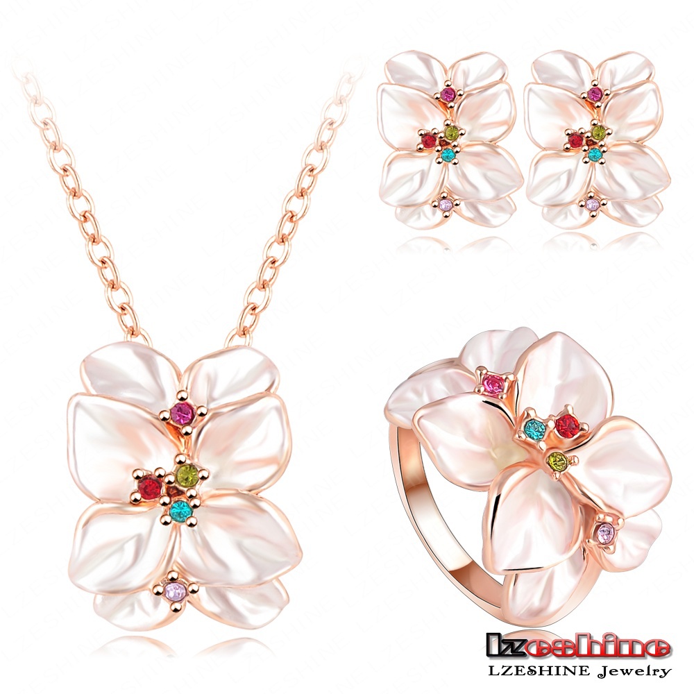LZESHINE Новый Топ Розовое Золото Плиты Цветок Комплект Ювелирных Изделий Multicolor Кубического Циркония Кулон/Серьги/Кольцо Женщины Свадебные Украшения наборы