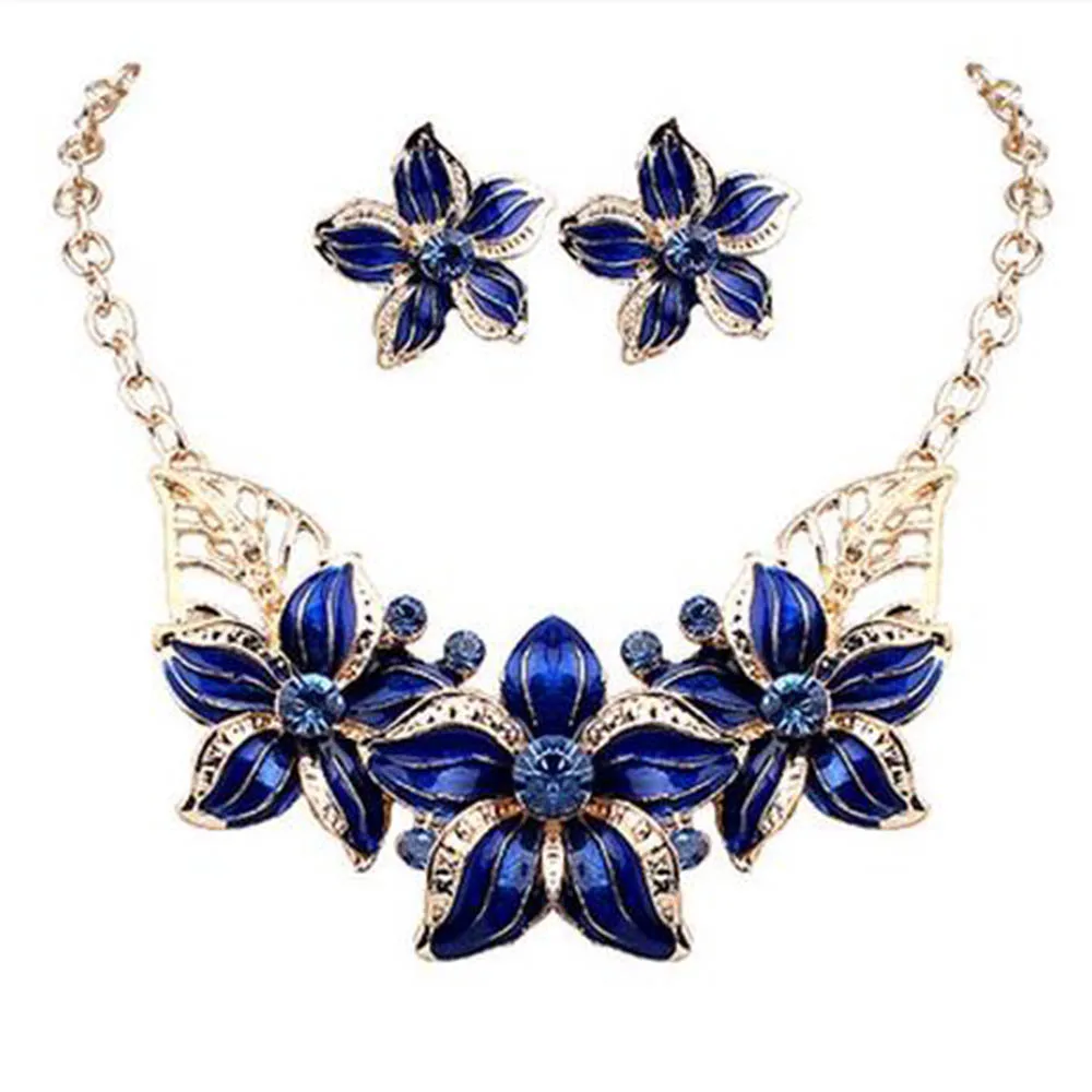 2016 Новый Комплект Ювелирных Изделий Ожерелье Серьги Женщина Леди Падение Нефти Цветок Джокер Романтический Удивительно Красивые Бесплатная доставка