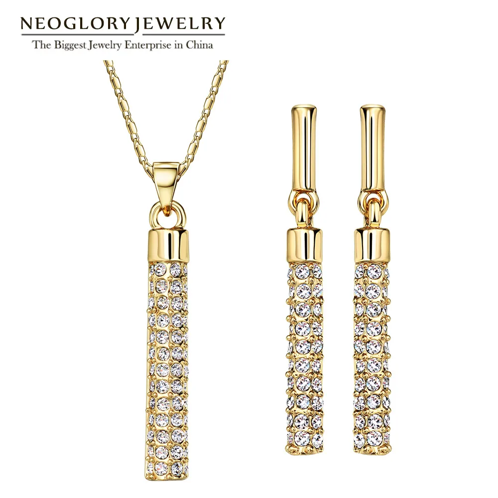 Neoglory Свадебные Украшения Устанавливает MADE WITH SWAROVSKI ELEMENTS Горный Хрусталь Позолоченные Ожерелья Серьги для Женщин Свадьба 2017