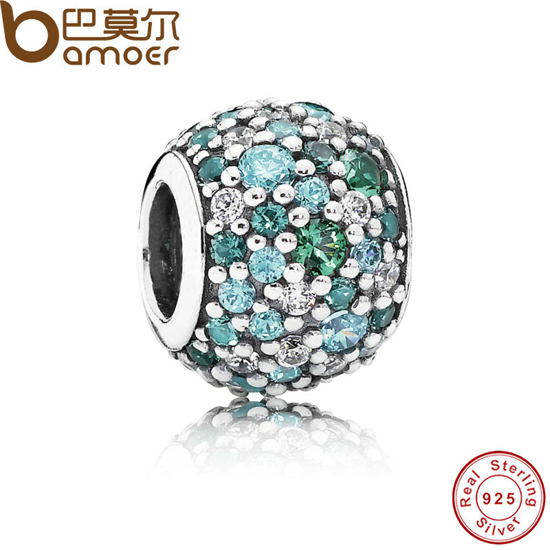 ПОДАРОК Подвески Fit Original Pandora Браслет Стерлингового Серебра 925 Океан Мозаика Проложить, смешанный Зеленый CZ & Зеленый Хрустальные Бусины PAS134
