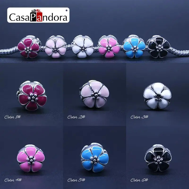 15 СТИЛЬ Оригинальный Стерлингового Серебра 925 Поэтический Цветы Ромашка Вишни Подвески Fit Pandora Браслет Бусины Ювелирных Изделий