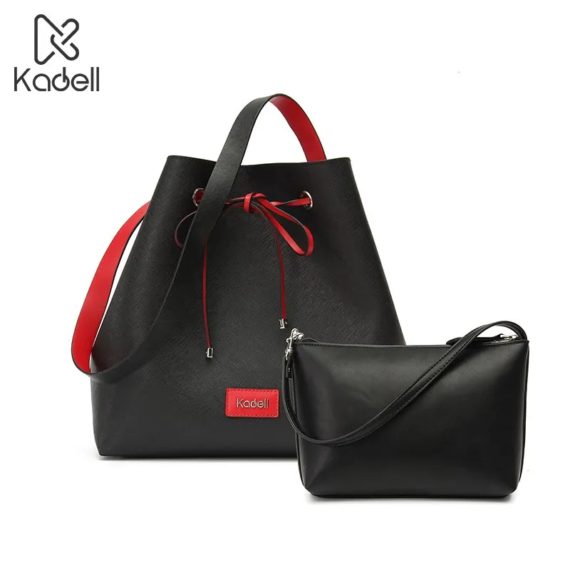 Kadell Марка 2 Шт./компл. 2016 Шнурок Ковша Сумка Женщины Кожаные Сумки Черный Большой Емкости Случайный Плечо Сумка Bolsa Feminina