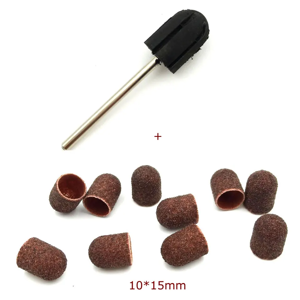 10*15 мм 10 шт. Шлифовальные Ленты Блок Шапки + Резиновой Оправки Ручка Маникюр Педикюр Инструменты Электрические Ногтей Дрель полировки Аксессуары