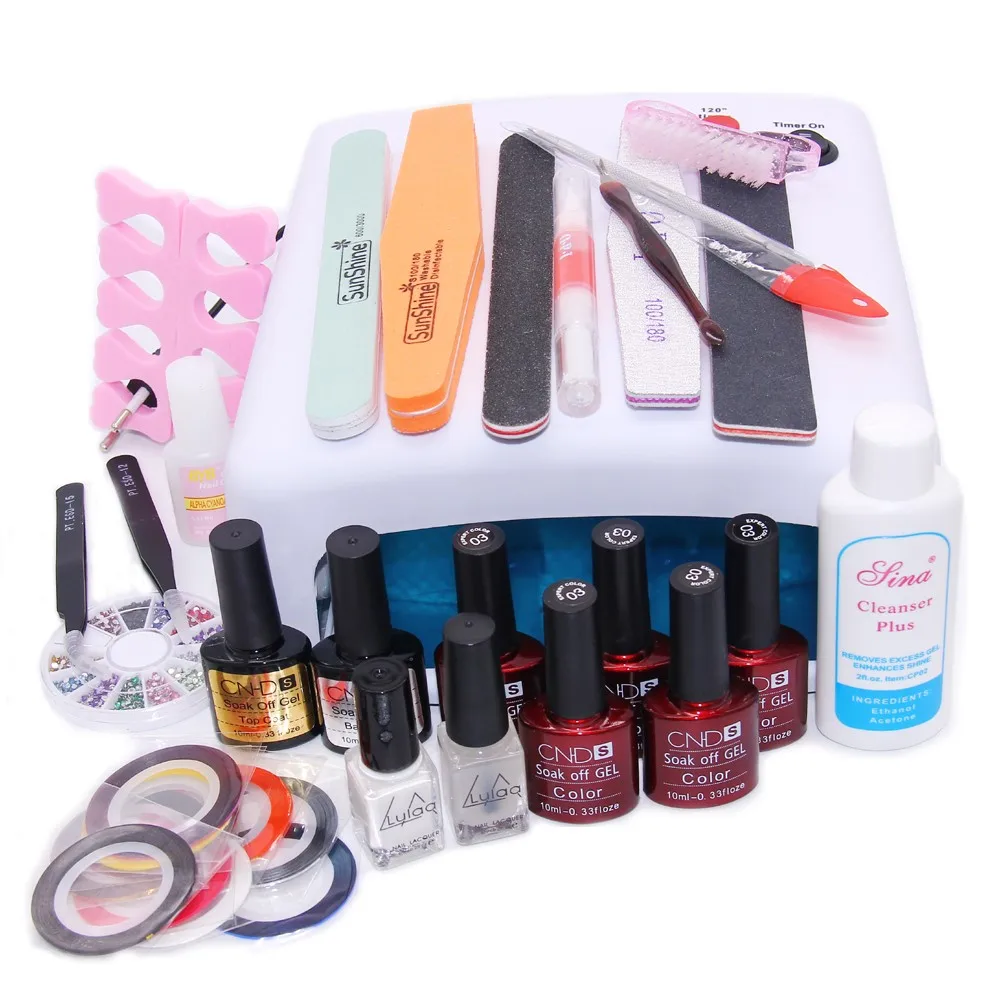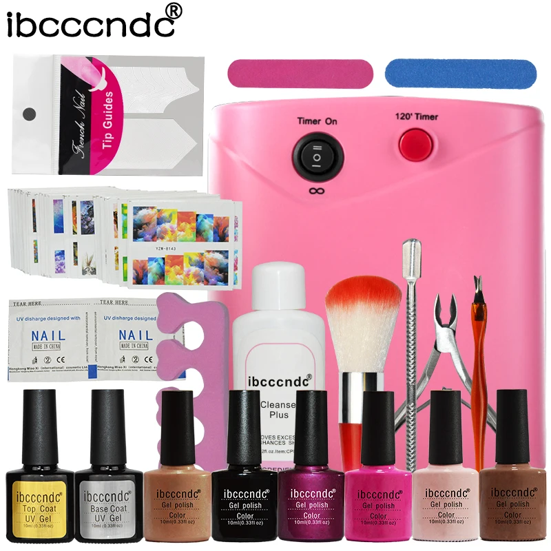 Ibcccndc Nail Art Маникюр Инструменты 36 Вт УФ Лампа + 6 Цвет 10 мл Soak off Ногтей Гель База Top Coat Для Снятия Лака Практика Набор Файлов комплект