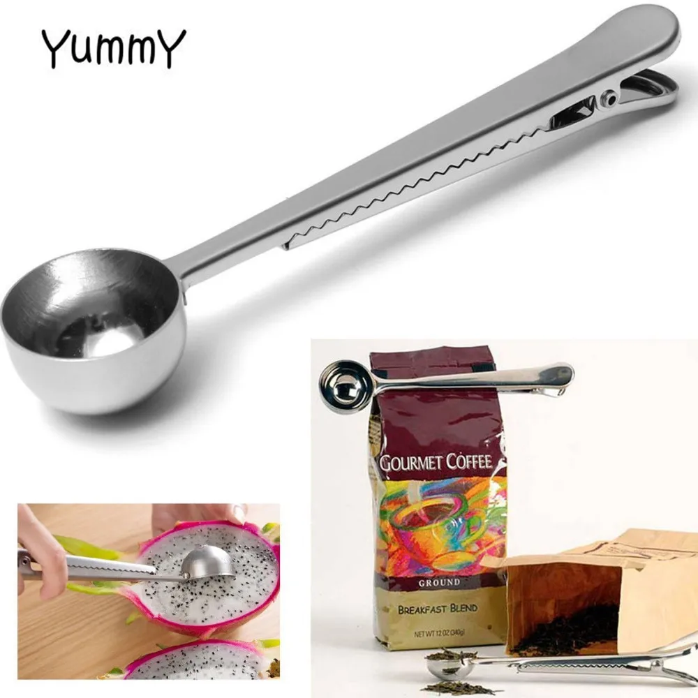2016 Серебро Нержавеющая Сталь Молотого Кофе, Чай Измерения Совок Ложка С Сумка Печать Клип
