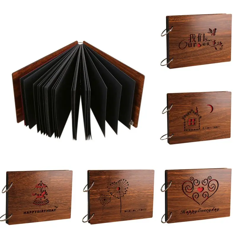 Рождественский Подарок Деревянные Покрытия Альбомы Ручной Работы с Отрывными листами Вставить Фотоальбом Персонализированные Любителей Детские Фотоальбом Скрапбукинга