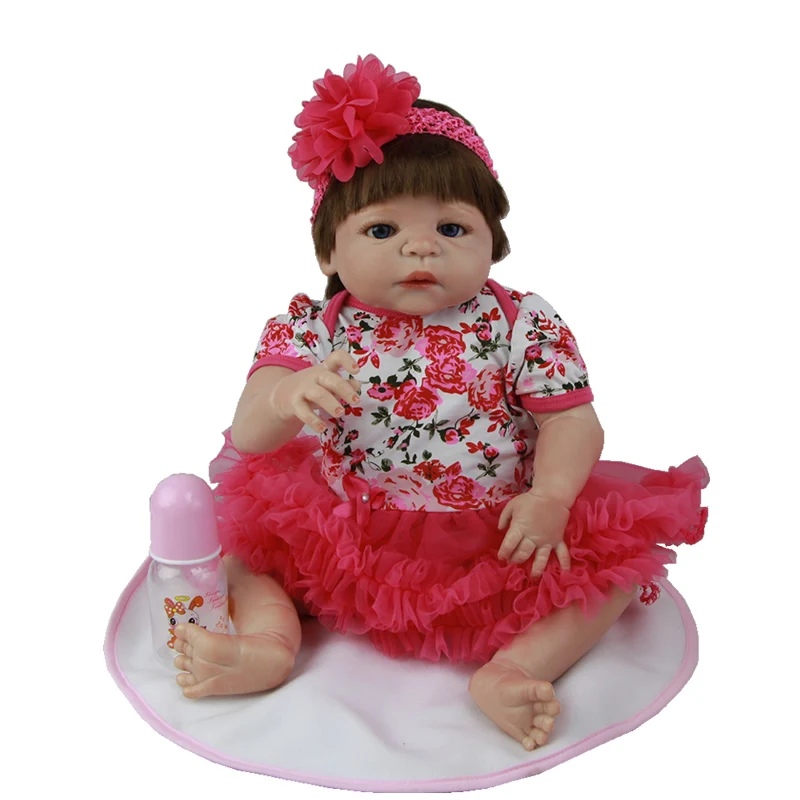 Новый Дизайн Жив Девочка Куклы 23 Дюймов Полное Тело Силикона винил Новорожденный Реалистичные Младенцы Игрушки С Платья Роза Дети Играют Куклы
