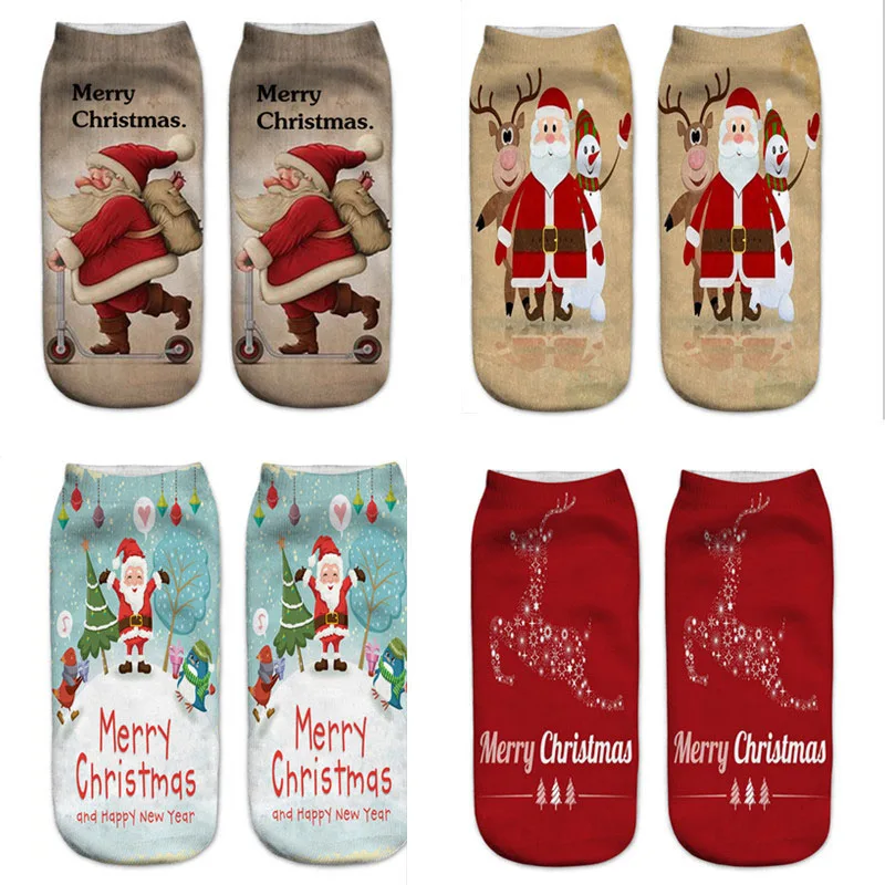 2017 New Women 3D Christmas Socks Unisex Cartoon Elk Snowman Santa Socks Women Low Cut Ankle Christmas Socks Calcetines Mujer