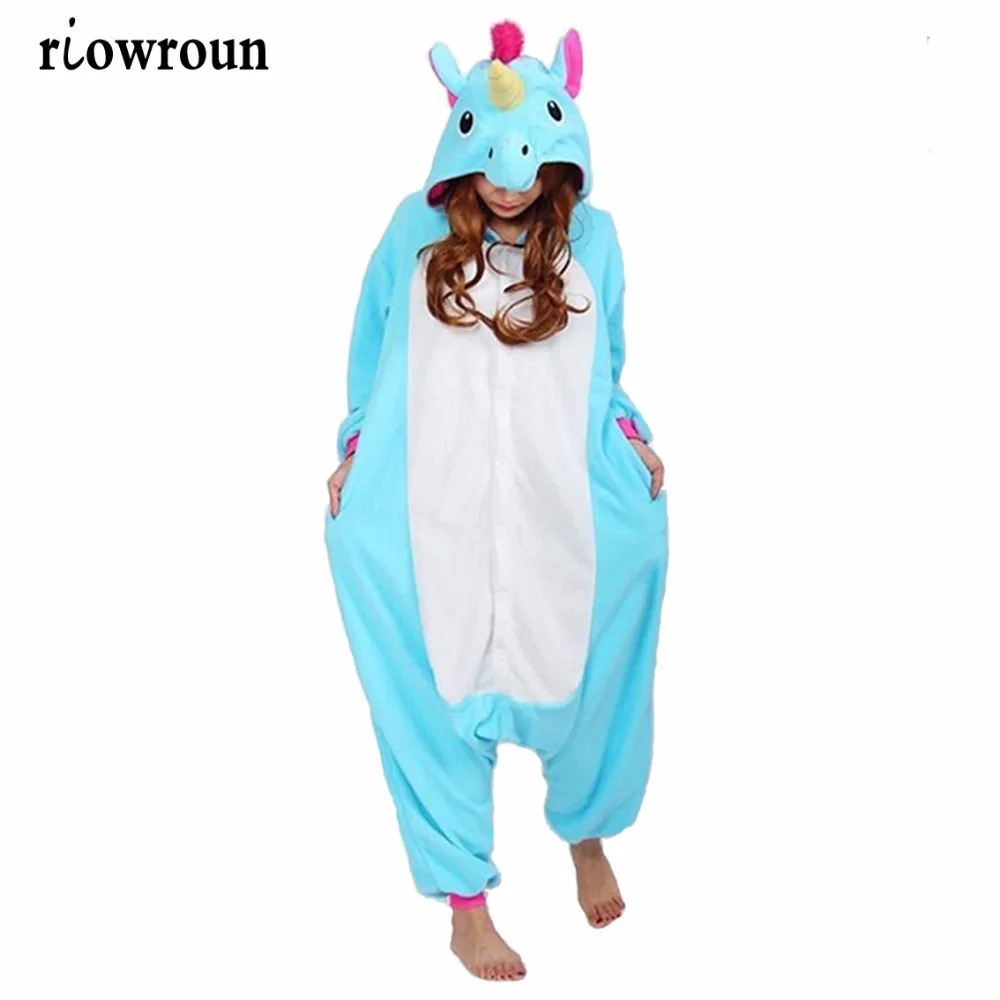 2017 Halloween Anime Pajama Sets Cartoon Sleepwear Women Pajamas Flannel Animal Stitch Panda Unicorn Pajama Winter Warm Hooded