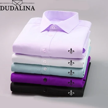 DUDALINA 2017 Men Casual Long Sleeved Solid shirt Slim Fit Male Social Business Dress Shirt Brand Men Clothing Soft Comfortable