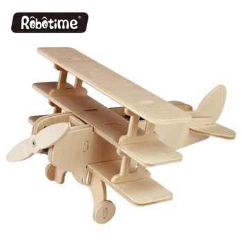 Solar Energy Aircrafts Natural Wooden Toy Ancient Plane Triplane Model Kids Favourite Handmade Airplane Rotate Propellers P250